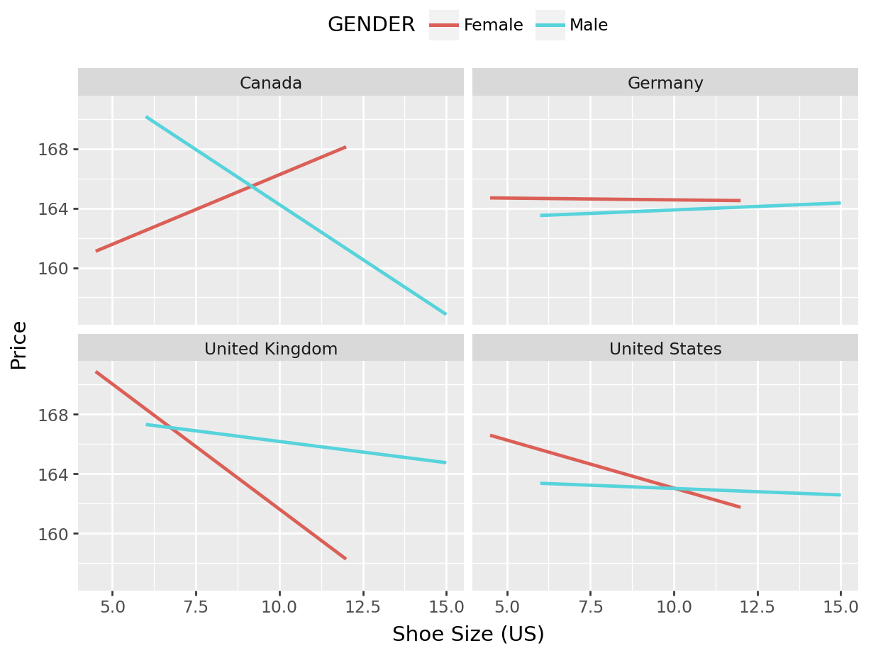 Relations between Shoe Size and Sale Price in Different Countries