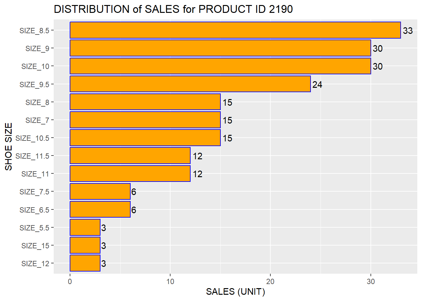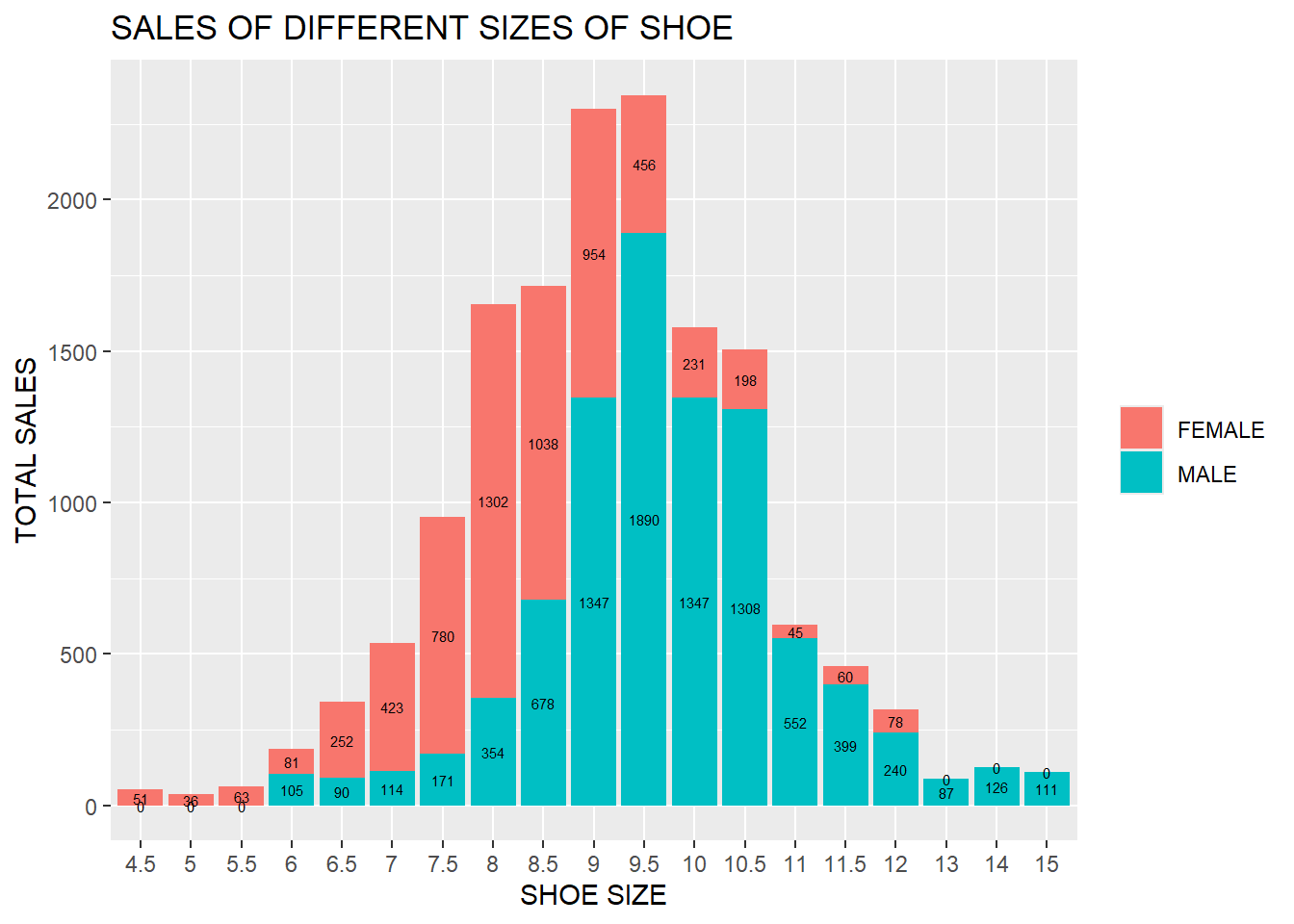 title = "SALES OF DIFFERENT SIZES OF SHOE")+