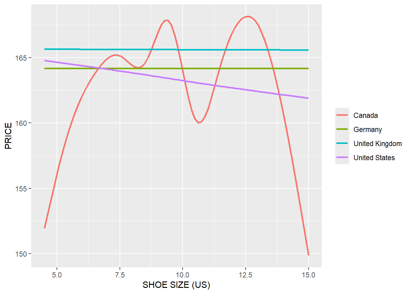 aes(x = as.numeric(SIZE_US), y = UNIT_PRICE, color = COUNTRY)