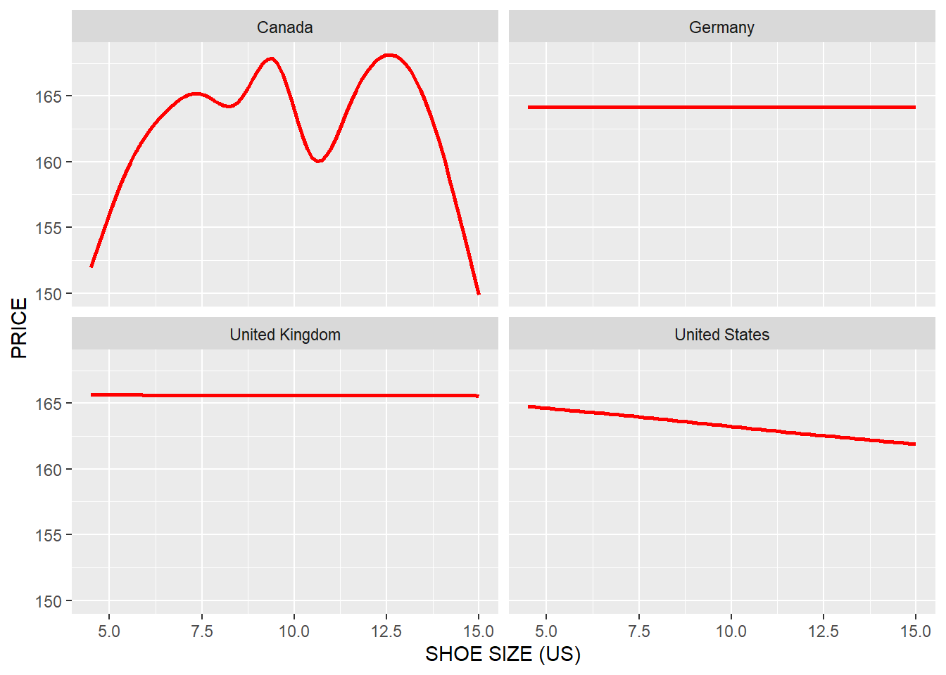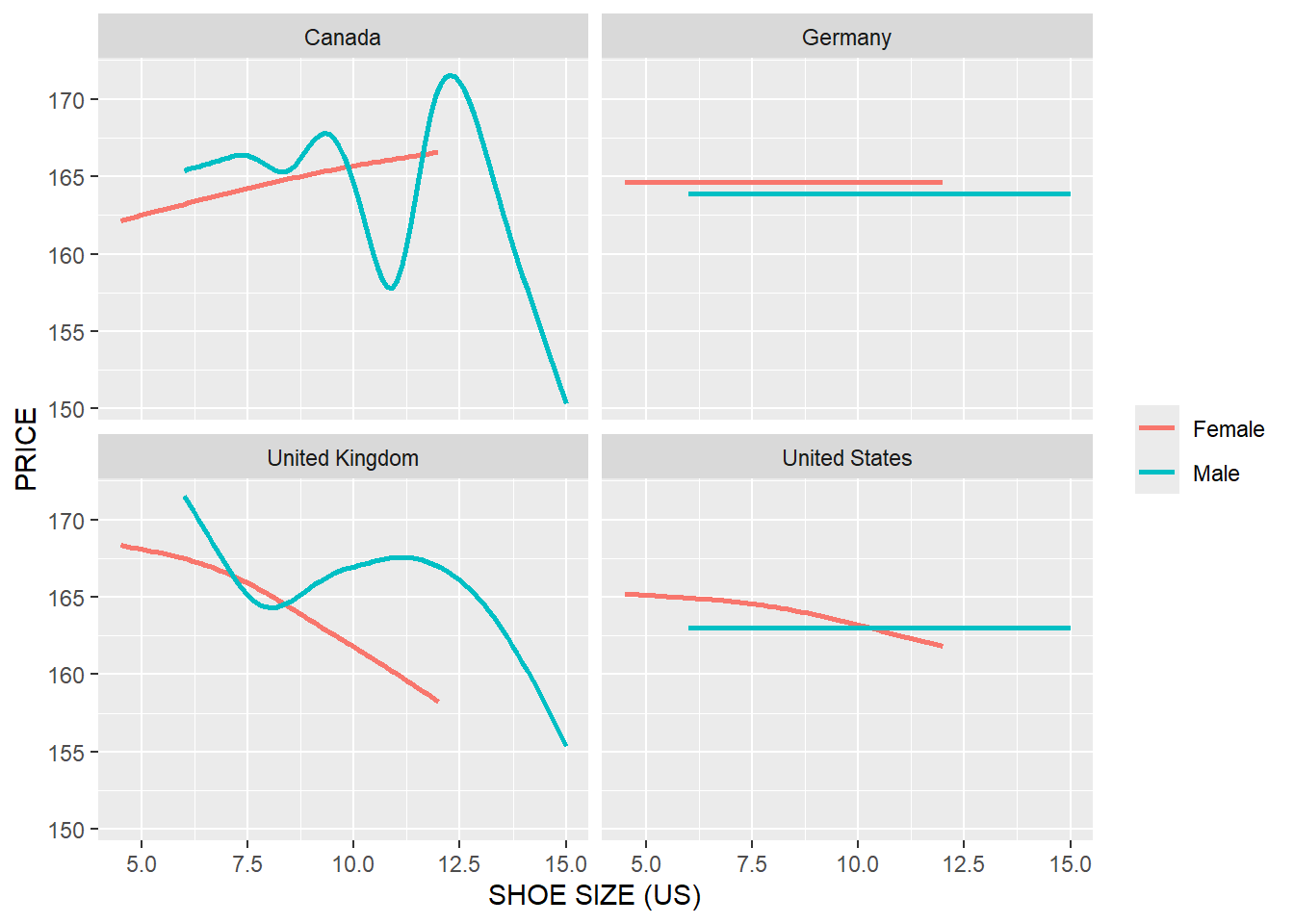13.1 Relationship between Shoe Size and Price in Different Gender and in Different Countries