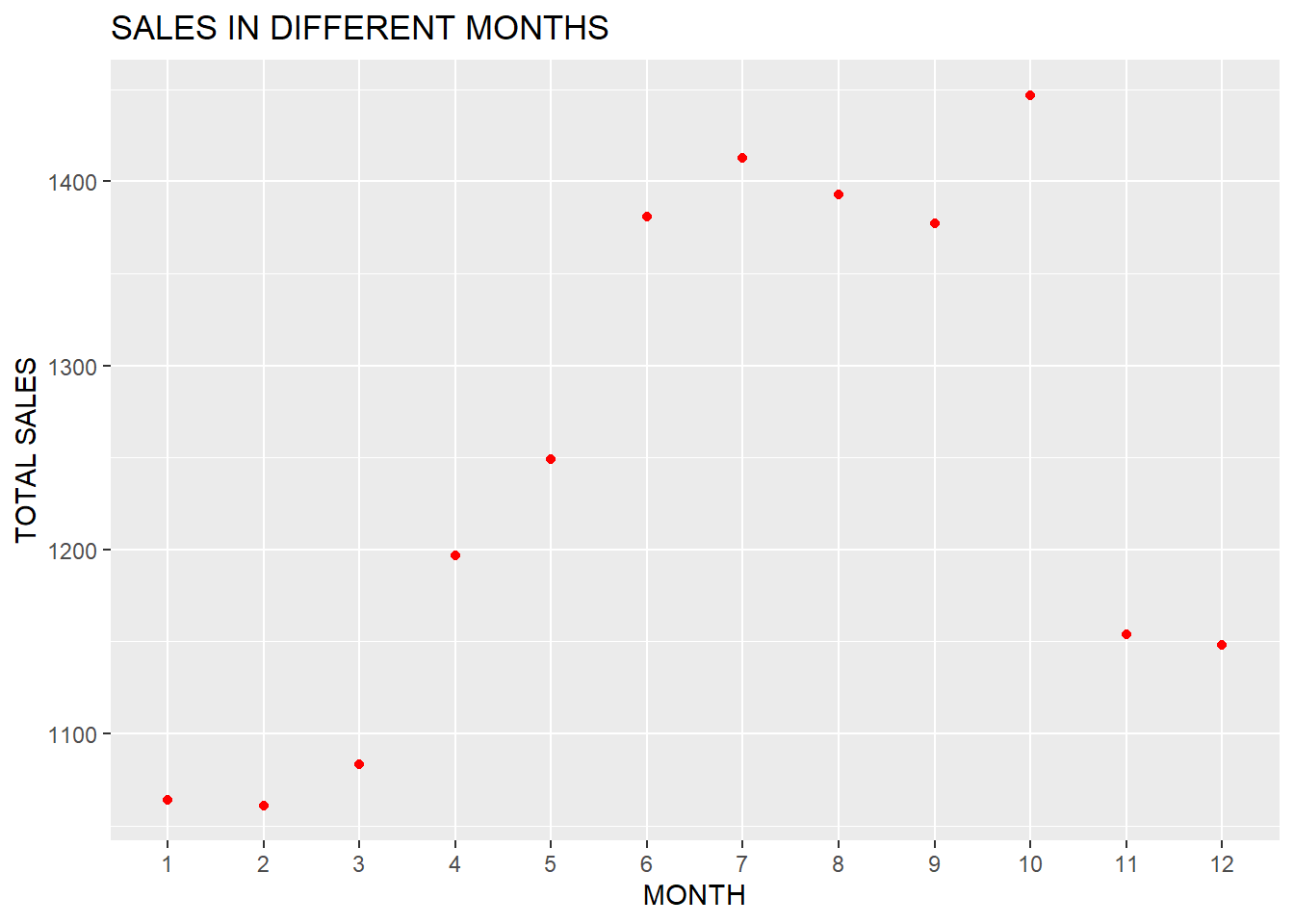 y = "TOTAL SALES", title = "SALES IN DIFFERENT MONTHS")
